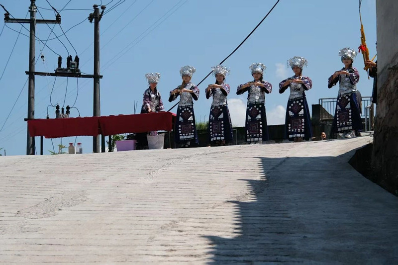 在巨嶺酒業(yè)廠區(qū)喝苗家阿妹的進門酒